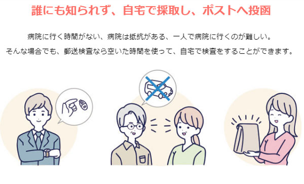 全国どこからでも申し込みが可能で、検査キットは自宅に届き、採取後はポストに投函するだけ。
