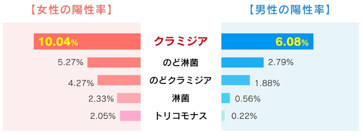 クラミジア、淋菌、梅毒、HIVといった主要な性感染症に加え、トリコモナスやカンジダ、のどの感染症まで幅広く対応。