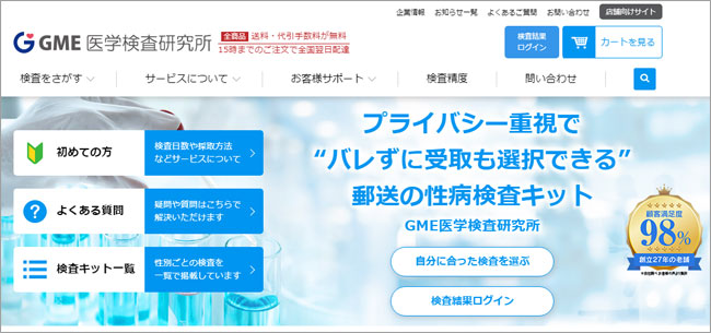 GME医学検査研究所は、1997年創業の老舗検査機関で、性病検査の郵送サービスを日本で初めて開始したパイオニア的存在。